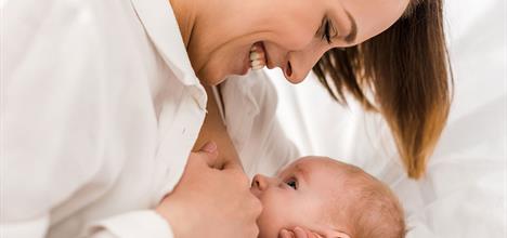 With the breast supported, stroke your baby's lower lip with your nipple or bring their chin in to touch the breast closely. This causes your baby to open their mouth. (If their mouth stays closed, stroke their lip again, press gently down on their chin with your index finger and open your own mouth, too, since they might imitate you.)