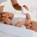 - A changing table that meets all safety specifications. It should be placed on a carpet or padded mat and against a wall, not a window, so there is no danger of your child falling out the window. Put shelves or tables to hold diapers, wipes, and other changing equipment within immediate reach (but away from the baby's reach), so you will not have to step away from the table—even for a second—to get anything.