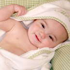 - A large plastic washtub for bathing the baby. As an alternative to the washtub, you can use the kitchen sink to bathe your newborn, provided the faucet swings out of the way and the dishwasher is off. (The water from the dishwasher could dump into the sink, resulting in scalding.) After the first month, it's safer to switch to a separate tub, because the baby will be able to reach and turn on the faucet from the sink. Always make sure the bathing area is very clean before bathing your baby. Also, be sure the hottest temperature at the faucet is no more than 120 degrees Fahrenheit (48.9 degrees Celsius) to avoid burns. In most cases, you can adjust your water heater.