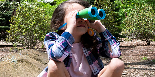 Put up a birdfeeder and enjoy watching the wildlife it attracts to your window or yard. Count how many different types of visitors you have. If you have binoculars, get a closer look at others on nearby perches. For birds you can hear but can’t see, try to guess where they are. For extra fun, try to make the same sounds they do with their calls and songs.