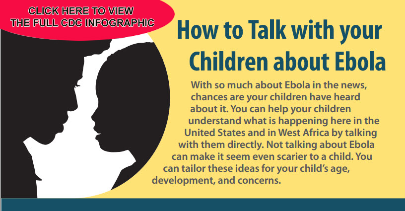 With many children and teens spending a lot of time on social media, there is also the risk that they could read something online about Ebola that they do not understand and may become unnecessarily alarmed. Pay close attention to what your children are seeing online.