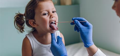 If your child has a sore throat and fever without symptoms of viral infection, your health care provider may swab your child's throat to test for Group A Strep infection. Some pediatricians' offices have quick-result strep tests that can help diagnose streptococcal infection in several minutes. A throat culture may be used, but this takes a few days.
