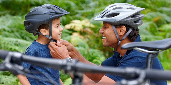 While bicycle riding is a fun way to exercise and get around, about 26,000 kids go to emergency departments with head injuries each year. Wearing a helmet can decrease the risk of head injuries by about 85% and facial injuries by about 65% among bicyclists. This is true for children as well as adults, so be sure to wear your helmet, too! Learn more about how to