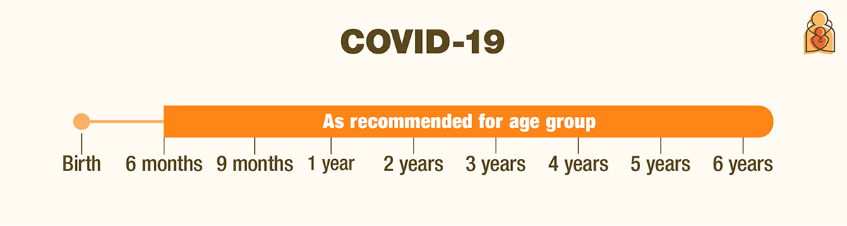Haemophilus influenzae type b, polio, pneumococcal disease, COVID, flu (influenza), measles, mumps, rubella, chickenpox (varicella) and hepatitis A.Immunization schedule for babies & young kids
