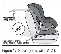 Figure 1 adapted from National Highway Traffic Safety Administration. LATCH Makes Child Safety Seat Installation as Easy as 1-2-3. DOT HS publication 809 489. Published March 2011. Accessed January 13, 2017.