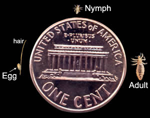 Nymph: the nit hatches into a baby louse called a nymph. It looks like an adult louse, but smaller. Nymphs mature into adults about 7 days after hatching. To live, the nymph must feed on blood.