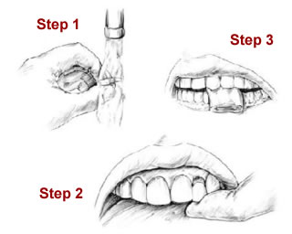- Rinse off the tooth with saliva or water (do not scrub it).