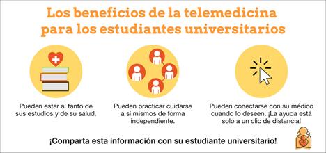 La telesalud (visitas por video o teléfono con el médico) hace posible mantenerse en contacto con tu médico cuando estás lejos o no puedes llegar fácilmente al consultorio. El centro de salud de tu universidad también puede ofrecer servicios de telesalud para los estudiantes. Esta opción significa que puede obtener la ayuda que necesita en el lugar y el momento adecuados.