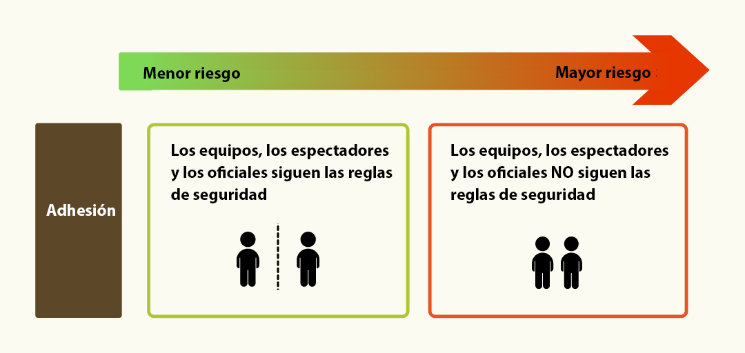 Con el fin de crear entornos seguros para todos, nuevos procedimientos de seguridad deben ser establecidos para las prácticas y los juegos. ¡Los padres, los atletas, entrenadores y oficiales necesitan trabajar juntos para ayudar a mantener a todos sanos y seguros cumpliendo con las recomendaciones! Cuando las personas no toman estas precauciones, puede poner en riesgo a todo el equipo. Así que recuerde ser un buen compañero de equipo y aficionado cumpliendo con estas nuevas reglas de seguridad. Para más información, consulte Deportes juveniles: chequeos previos para volver a la actividad física durante el COVID-19​.